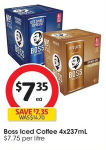 1/2 Price Suntory Boss Iced Coffee Varieties 237ml 4-Pack $7.35 @ Coles