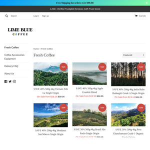 1kg Coffee from $25.79 Save Up to 55% Equipment + Del ($0 w/ $99 Order, C&C, Opt Delay Dispatch 7+ months ) @ Lime Blue Coffee