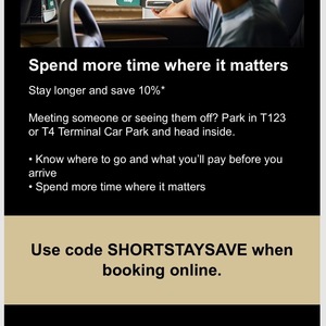 10% off at Terminal Car Parks at Melbourne Airport - for Stays under 6 Hours - between 1 to 31 May 2026
