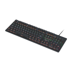 Mechanical keyboard for gaming and typing USB 2.0 wired connection for reliable input RGB lighting for customisable visual effects Inbuilt flip-out feet for adjustable height Black colour with …