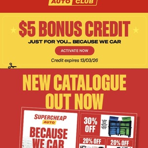$5 Bonus Credit for Club Members @ Supercheap Auto (Activation Required)
