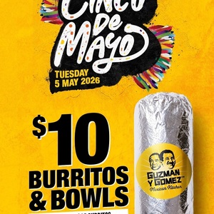 Cinco De Mayo is just around the corner, and Guzman y Gomez is making it easy to celebrate with a massive deal on your lunch or dinner! You can grab your favourite Burritos and Bowls for just $10 all day long.
