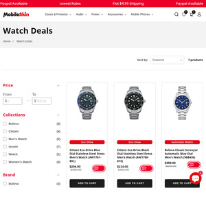 Citizen & Bulova Watches (Men’s & Women’s) from $189 + $4.99 Delivered @Mobileskin