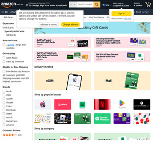 10% off Uber Eats, City Beach & Naked Wine eGift Cards, $10 Promo Credit on $100 Category Choice eGift Card Spend @ Amazon AU