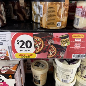 • This is a massive saving because the pizzas and gelato rarely go on sale together—you're saving $14.50 off the regular price!