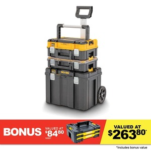 Mate, don't miss out on this massive DEWALT storage upgrade! You're getting the TSTAK II 3-in-1 Tool Case Kit PLUS a FREE TSTAK IV Twin Drawer valued at around $90, all for just $199 at Total Tools. Even with the price nudge, you're saving about 30% off the combined RRP—that's huge value for top-tier Aussie tool storage! Grab this before the offer wraps up on December 24th, and remember, you can snag free Click & Collect.