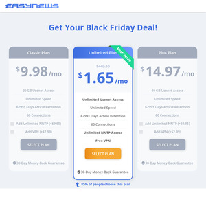Stop paying too much for your news and security! You can lock in Easynews access plus a FREE PrivadoVPN for an absolute steal at just $1.65 AUD (~$2.92) per month when you grab this introductory deal.