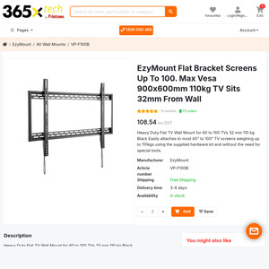 EzyMount Heavy Duty Flat TV Wall Mount (60-100") VP-F100B $108.54 Delivered @ 365x Tech