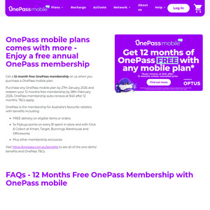 Free 1 Year OnePass Membership with Any Mobile Plan @ OnePass Mobile