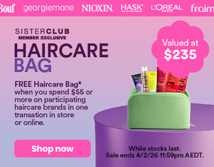 You absolutely need to grab this one at Priceline—spend $55 on your favourite haircare and score a FREE Haircare Bag loaded with goodies! Treat yourself now because you can also snag 30% off cult favourite Bouffant and up to 40% off selected L'Oreal Elvive while you're there. Don't miss out on stocking up on staples and getting that free haul!