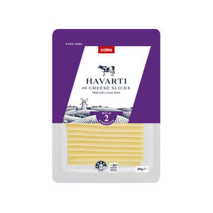 Havarti Cheese Slices 200g $3.6 or 2 for $3.5 ea (Was $5.35) @ Coles