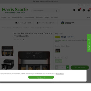 Instant Pot Vortex Clear Cook Dual Air Fryer Black 8 L $139