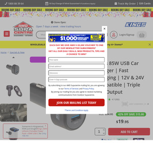 Kings 85W USB Car Charger $19.95 (was $34.95) + Delivery ($0 C&C) @ 4WD Supacentre