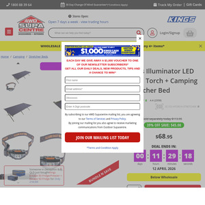 Upgrade your next camping trip for just $68.95 with this killer combo from 4WD Supacentre! You’re getting a heavy-duty stretcher bed—priced lower than wholesale—plus a free Kings Illuminator LED head torch to keep you sorted after dark.