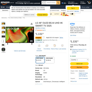 LG 48" OLED AI B5 4K UHD Smart TV 2025 $1,017.90 Delivered @ Amazon AU