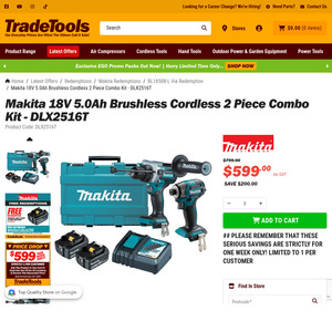 Makita 2-Piece Combo Kit DLX2516T $599 +Delivery @ TradeTools( $539.10 after Bunnings Price Beat)