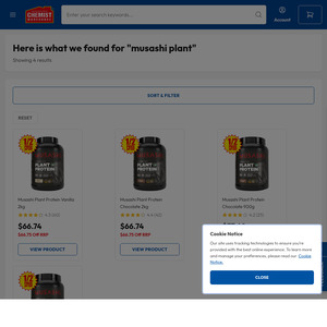 Musashi Plant Protein 2kg (Chocolate / Vanilla) $66.74 + Delivery ($0 C&C) @ Chemist Warehouse
