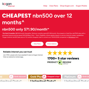 nbn FTTP or HFC 500/50 $71.90/M, 750/50 $84.90/M, 1000/100 $94.90/M for 12 Months (New Customers) @ Kogan Internet