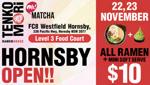 Dude, you HAVE to check out this Tenkomori Ramen House opening special in Hornsby! For just $10, you're getting a piping hot bowl of ramen AND a mini soft serve. Seriously, it's ramen plus dessert for a tenner! Don't miss out—this epic deal is only on for 2 days!