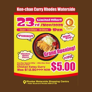 Get ready for an epic feed, Sydney foodies! Ken-Chan Curry is opening in Rhodes and you can score their legendary Chicken Katsu Curry for an absolute steal.