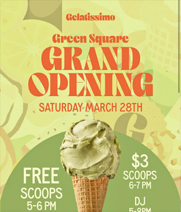 Get ready for the sweetest deal in Green Square this Saturday! You can snag FREE scoops of delicious gelato between 5 PM and 6 PM for Gelatissimo's Grand Opening.
