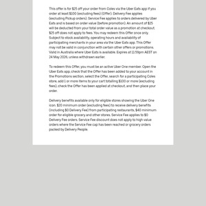 [Uber One] $25 off $100 Spend @ Coles via Uber Eats