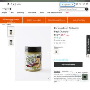 Stop scrolling! You need to see this cracker deal from Typo: score a Personalised Pistachio Papi Crunchy Spread (180g) for just $5 (that's 58% off the RRP of $12!).