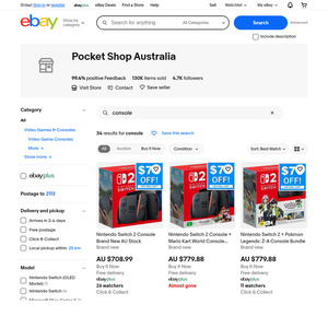 [eBay Plus] Nintendo Switch 2 Console $638.99 Xbox Series X 1TB Disc Console $759.98 and More console @ PocketShop eBay