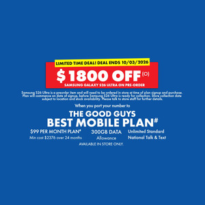![[Pre Order] $1800 off Samsung Galaxy S26 Ultra with TGG Mobile $99/M 24-M Plan (Port-in Only, in-Store Only) @ The Good Guys](https://jqcnnobvzfmkirjbtqeo.supabase.co/storage/v1/object/public/product-images/marquee/ozbargain/951131.jpg)