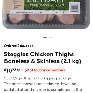 [Price Error] Lilydale Free Range Chicken Thigh Fillets $5.99/kg @ Costco via DoorDash