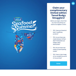 Purchase 2 Participating Pre-Packaged Tassal from Participating Outlet & Redeem a Budgy Smuggler @ Tassal