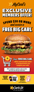 [QLD, NSW, SA, VIC] Spend $30 or More, Get a Free Burger, Any 2 Cheeseburger for $5 @ Carl's Jr App