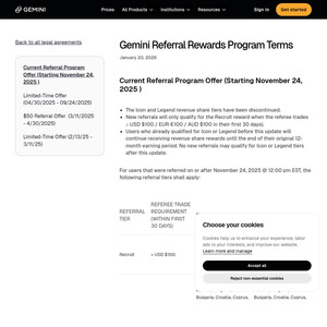 Gemini is offering $50 AUD in crypto for you and $50 AUD for your friend when they sign up via referral and trade $100. Looks like the old deal but now everything in AUD. You can earn up to $1,500 …