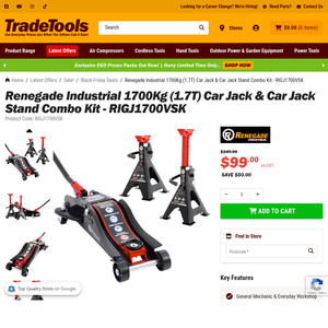 Don't miss out, legends – this powerhouse combo is back for Black Friday! You can grab the Renegade Industrial 1700kg Trolley Jack and Jack Stand Kit for just $99 (plus delivery, but snag FREE in-store pickup across QLD!). For under a hundred bucks, you're securing a compliant, heavy-duty setup—the jack handles 1.7t and meets AS 2615:2016. This is a genuine bargain for keeping your ride safe!
