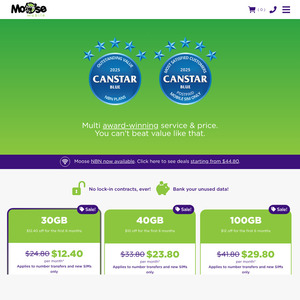 Moose Mobile 30GB Promo - 12.40 off for first 6 months (30GB of standard data and 200GB data banking, + unlimited standard national calls & text. Promo: $12.40 off for the first 6 months Offer …