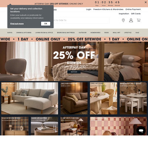 25% off Sitewide + Delivery ($0 C&C) @ Freedom Furniture