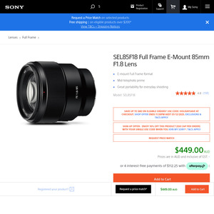 Sony SEL85F18 Full Frame E-Mount 85mm F1.8 Lens $409 Delivered @ Sony