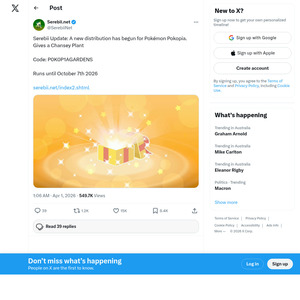 ![[Switch 2] In Game Chansey Plant for Pokémon Pokopia via in-Game Mystery Gift](https://jqcnnobvzfmkirjbtqeo.supabase.co/storage/v1/object/public/product-images/marquee/ozbargain/954431.jpg)