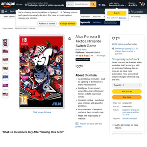 ![[Switch] Persona 5 Tactica $25.39 + Delivery ($0 with Prime/ $59 Spend) @ Amazon AU](https://jqcnnobvzfmkirjbtqeo.supabase.co/storage/v1/object/public/product-images/marquee/ozbargain/931158.jpg)