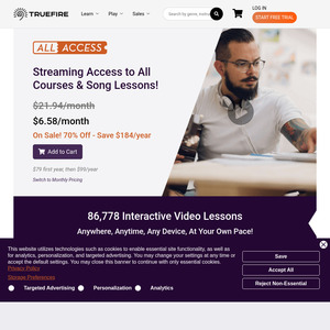 Seriously, you won't find a better deal to level up your guitar skills this Black Friday! For just $79 for the first year (that's only $6.58 per month!), you unlock over 80,000 online guitar lessons with TrueFire – it's absolutely insane value. Grab this annual subscription now before the price jumps to $99 next year!