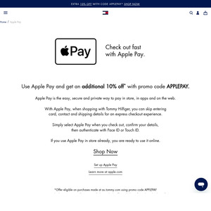 Want to refresh your wardrobe for less? Use Apple Pay at Tommy Hilfiger and you'll snag an extra 10% off your order with code APPLEPAY!
