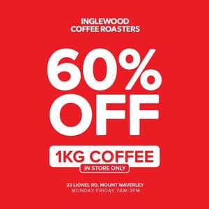 [VIC] 60% off 1kg Coffee Beans in-Store Only @ Inglewood Coffee Roasters, Mount Waverley