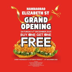 Get ready to double the deliciousness at Hanbaobao's new Elizabeth St store! You can snag a Buy 1 Spicy Chicken Burger, Get 1 FREE for just $7.90 – that’s half price on two epic burgers.