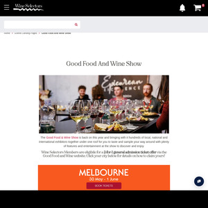 [VIC, NSW, WA, QLD] Good Food and Wine Show 2 for 1 Flexi GA Ticket $54.95 + Booking Fee @ Good Food Show via Wine Selectors