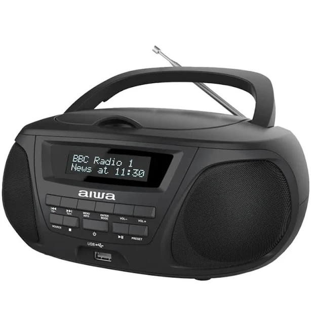 Tune In to Your Favourite Sounds with the Aiwa AWPCD-1019D Boombox Enjoy versatile listening with the Aiwa AWPCD-1019D Boombox. This feature-packed device combines a classic boombox design with modern technology, letting you enjoy DAB+ and FM radio, CDs, MP3s via USB, and Bluetooth streaming. Take your music on the go thanks to its portable design and enjoy clear, powerful audio perfect for any occasion. Key Features: DAB+ and FM radio for access to a wide variety of stations Built-in CD player compatible with CD-R/RW discs USB port for playing MP3 files from your own collection Bluetooth connectivity for wireless streaming from your smartphone or tablet The Aiwa AWPCD-1019D Boombox is the ideal choice for music lovers who want a versatile and portable audio solution.