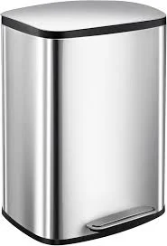 Amazon Basics 50 Liter / 13.2 Gallon Soft-Close Trash Can with Foot Pedal - D-Shaped, Stainless Steel
