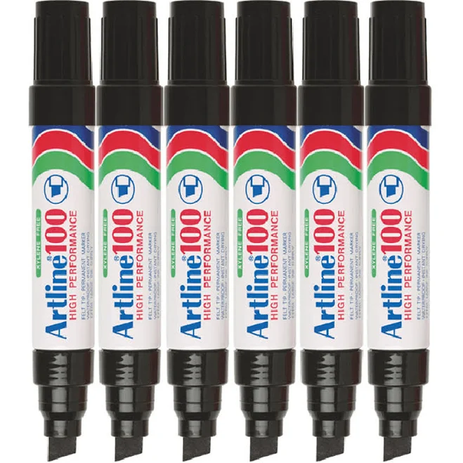 Artline 100 Pack 6 Permanent Marker Thick 12mm Chisel Nib (Black)