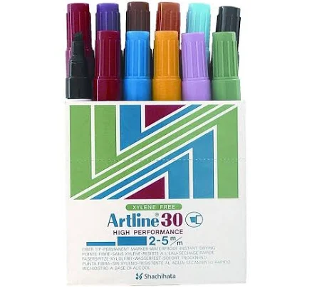 Artline 30 Box 12 Mini Permanent Marker Chisel Tip 5mm (Assorted Colours)