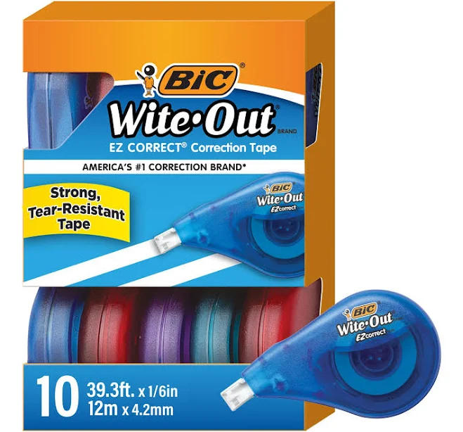 Bic Wite-Out Ez Correction White Tape Cover Up Out [Box 10]