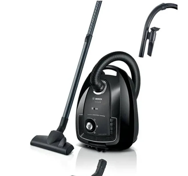 Introducing the Bosch Series 4 Bagged Vacuum Cleaner in Black. This powerful vacuum cleaner is designed to provide thorough cleaning results with its 2200 watt motor. With its flexible clip for accessories, you can easily attach and detach various tools to tackle different cleaning tasks. The extra-large dust bag volume ensures less frequent dust bag changes, saving you time and effort. Additionally, this vacuum cleaner is designed with low follow-up costs in mind, making it a cost-effective choice for your cleaning needs. Its sleek black design adds a touch of elegance to any home. Say goodbye to dirt and dust with the Bosch Series 4 Bagged Vacuum Cleaner.